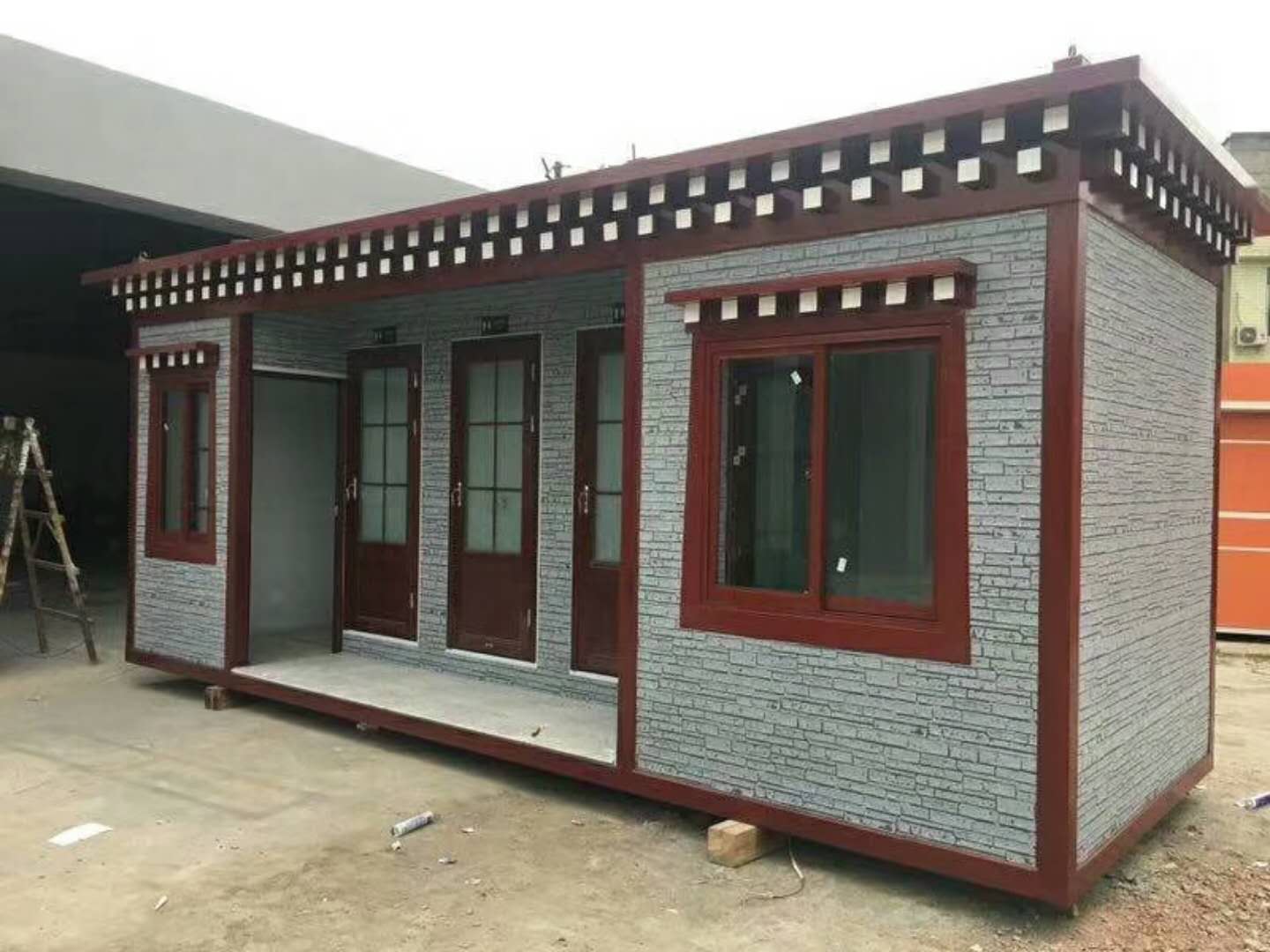 2、墻體: 墻板采用金屬雕花板,金屬雕花板是保溫、隔熱、阻燃、防雨、防凍、隔音、抗震等功能,金屬雕花板表面采用耐候聚酯漆層、氟碳層,具有耐候性、耐腐蝕性、耐酸堿性及自潔行。內(nèi)室墻面為3mm厚熟料的鋁塑板,有防火、防腐、防劃、防撞擊等。