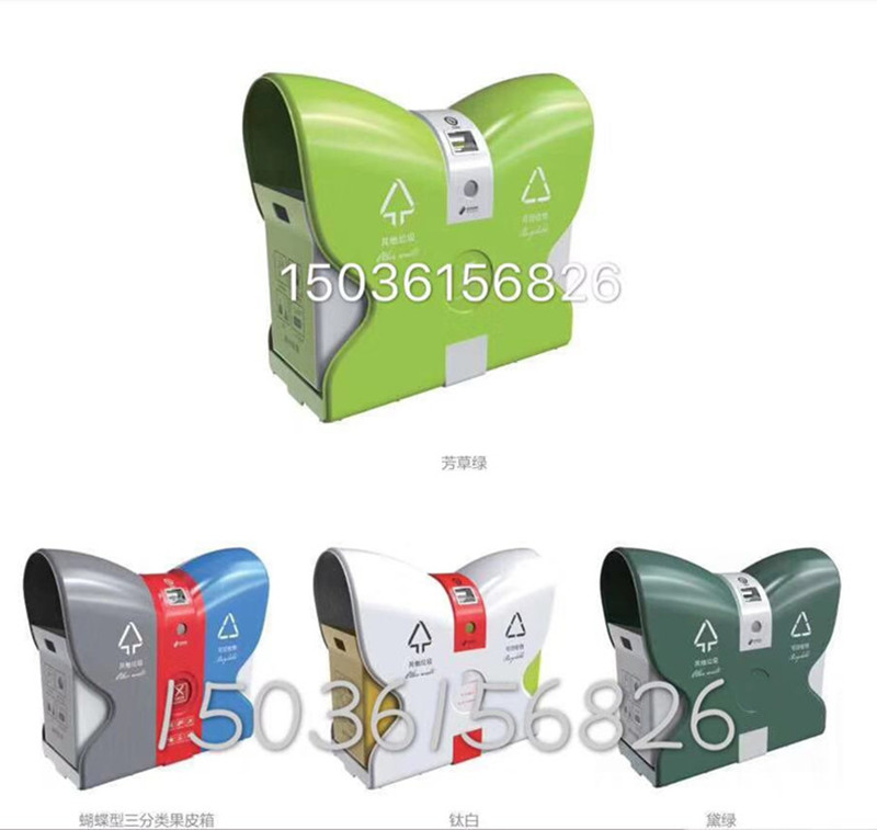 新款模壓耐高溫蝴蝶式垃圾桶果皮箱,由頂蓋、側(cè)板、底座、支架、內(nèi)膽、煙蒂收集盒、廢電池回收盒等附配件組成。