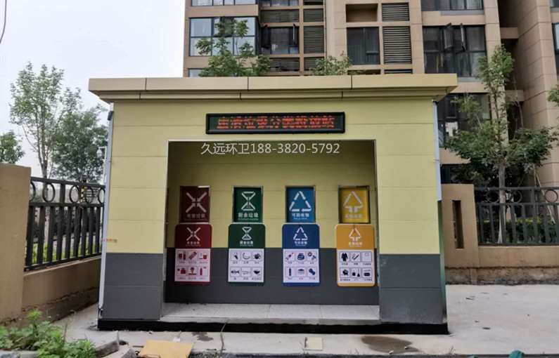 生活垃圾分類投放站廠家定制——久遠(yuǎn)環(huán)衛(wèi)是一家集研發(fā)生產(chǎn)、銷售服務(wù)為一體的大型環(huán)衛(wèi)設(shè)備生產(chǎn)企業(yè),公司注冊(cè)資金5000萬(wàn)元,占地面積50余畝,擁有現(xiàn)代化生產(chǎn)車間1萬(wàn)余平方米,辦公面積1000余平方米,在職員工200多人,具有雄厚的技術(shù)及生產(chǎn)實(shí)力。 公司主要生產(chǎn)垃圾壓縮中轉(zhuǎn)站、垃圾分類收集房、環(huán)保移動(dòng)公廁、各類垃圾桶果皮箱、環(huán)衛(wèi)工具箱、環(huán)衛(wèi)道班房、崗?fù)ぁ⑿蓍e座椅、等公共環(huán)衛(wèi)設(shè)施。