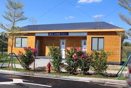 4、移動廁所的屋面采用的是瀝青瓦,內(nèi)部是加上了鍍鋅板材,具防水效果好并且能與現(xiàn)代城市的景觀相應(yīng)。
